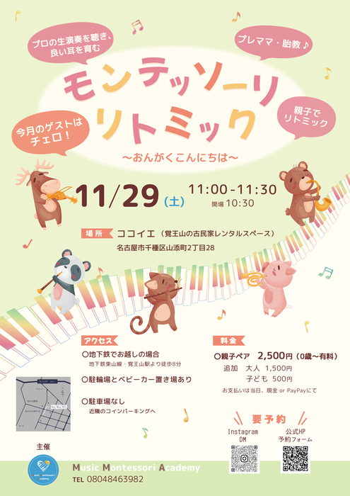 この街が名古屋で1番子育てしやすい、楽しく子育てできる街になったら嬉しいという想いからMusic Montessori AademyとPlus Kombuchaがタッグを組んで月に一度開催しています。